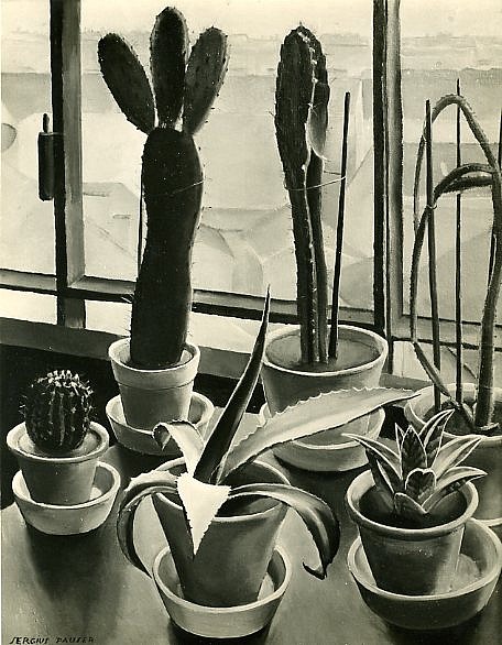 Kakteen am Atelierfenster, 1926, Öl auf Leinwand, ca. 50x40 cm, WV 19, Vorbesitz: Museum der Stadt St. Pölten